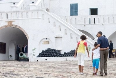 中新網(wǎng)7月12日電 綜合報(bào)道,美國(guó)總統(tǒng)奧巴馬以參觀前奴隸交易中心結(jié)束了他對(duì)西非國(guó)家加納的訪問,曾有很多非洲奴隸從這個(gè)交易中心被運(yùn)往美國(guó)。奧巴馬一家星期六參觀了海岸角城堡,英國(guó)在17世紀(jì)把這個(gè)緊靠海邊的堡壘改為奴隸交易所。