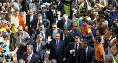 事實(shí)上,早在6月2日出席在羅馬舉行的意大利共和國(guó)成立日紀(jì)念活動(dòng)時(shí),貝盧斯科尼就遭到了一陣起哄的口哨聲。自那以后,只要是出現(xiàn)在公開(kāi)場(chǎng)所,貝盧斯科尼總會(huì)聽(tīng)到民眾的起哄。