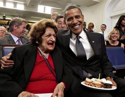 據(jù)“中央社”報道,奧巴馬1961年8月4日生于夏威夷。白宮當天并沒有特別的祝壽活動。中午奧巴馬由副總統(tǒng)拜登陪同,與幾乎所有民主黨籍參議員共進午餐,爭取他們支持他的健保改革政策。