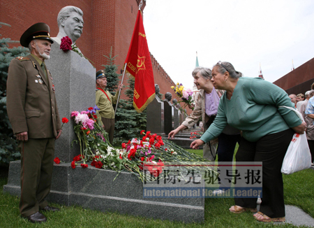 在去年的一次全國民調(diào)中,斯大林被評(píng)為俄歷史上第三大最得人心的人物。就在最近,莫斯科市中心地鐵站的大理石大廳里出現(xiàn)了贊美斯大林的鍍金文字。也有西方媒體評(píng)論說,克里姆林宮意圖重塑蘇聯(lián)時(shí)代的大國聲譽(yù),而使蘇聯(lián)邁上工業(yè)化道路進(jìn)而成為美國的強(qiáng)勁敵手,以及領(lǐng)導(dǎo)蘇聯(lián)紅軍戰(zhàn)勝德國法西斯的正是斯大林。
