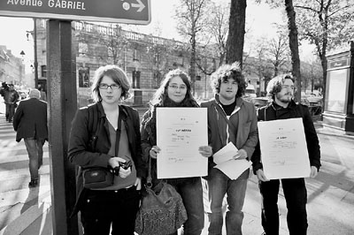 反對派社會黨青年團(tuán)不滿讓-薩科齊子憑父貴,4名成員昨日游行前往愛麗舍宮,拉橫幅要求薩科齊收養(yǎng)失業(yè)年輕人。