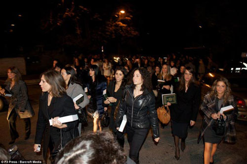 一位參加晚會的女子表示,“他告訴我們一些關于耶穌的事,他說耶穌并沒有真的被釘上十字架,他請我們閱讀《可蘭經》!碑斖頃Y束,與會女子得到的小禮物,就是一本《可蘭經》、一本卡扎菲寫的書,以及100歐元的出場費。