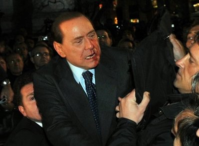 73歲的貝盧斯科尼上個(gè)月中旬,在米蘭參加集會(huì)時(shí),遭人用模型襲擊,導(dǎo)致鼻骨骨折、掉了兩顆牙。在醫(yī)院接受數(shù)天治療后,貝盧斯科尼便一直住在米蘭休養(yǎng),取消了很多工作安排。