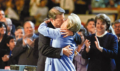 兩人于1970年5月共諧連理,在人前非常恩愛(ài),被視為政壇上的模范夫妻。在2000年民主黨總統(tǒng)提名大會(huì)上,他和蒂珀當(dāng)眾來(lái)了一次長(zhǎng)長(zhǎng)的熱吻,成為佳話(huà),被評(píng)為選競(jìng)中最難忘的時(shí)刻之一。