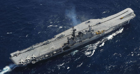印度海軍還在大力發(fā)展航母等藍(lán)水海軍的戰(zhàn)略武器。今年2月28日,印度第一艘自主研制航母的組裝開工儀式在南部港口城市科欽舉行。印度人預(yù)計(jì)這艘國產(chǎn)航母在2014年左右可以形成戰(zhàn)斗力。而印度此前就已經(jīng)向俄羅斯進(jìn)口的“戈?duì)柺部品颉碧?hào)航母則有望在2012年服役。未來印度海軍的兩個(gè)航母編隊(duì)同時(shí)執(zhí)勤,一艘可以在印度洋保持日常巡邏,另一艘則可以前出阿拉伯海甚至太平洋、大西洋等地活動(dòng),提高印度的全球影響。