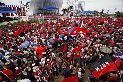 1979年7月19日,桑地諾民族解放陣線(桑解陣)帶領尼加拉瓜人民推翻了索摩查家族長達40余年的專制統(tǒng)治,入主首都馬那瓜,聯(lián)合社會各界政治力量成立了民族復興政府。但桑解陣在1990年全國大選中敗北,成為在野黨。之后,桑解陣幾經(jīng)沉浮,于2006年11月重新成為執(zhí)政黨。桑解陣總書記奧爾特加在2006年11月的尼加拉瓜總統(tǒng)選舉中勝出。