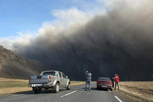 正在冰島觀察火山爆發(fā)的荷蘭氣象學(xué)家埃德溫•詹尼表示:“現(xiàn)在,我們距離火山口大約有25公里遠(yuǎn),正在觀察一個(gè)灑滿陽光的冰蓋。它的上空有一片高達(dá)4公里至5公里的火山灰云柱,這簡直是真正的地獄……”