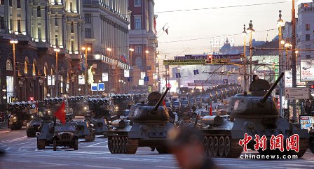 據(jù)報(bào)道,27日,俄羅斯出動(dòng)約159輛軍用車輛及1萬多名軍人,進(jìn)行了關(guān)于今年5月9日俄羅斯衛(wèi)國戰(zhàn)爭(zhēng)“勝利日”65周年時(shí),紅場(chǎng)閱兵儀式的彩排活動(dòng)。此次閱兵分為兩部分:歷史部分和現(xiàn)代部分。歷史部分由身穿衛(wèi)國戰(zhàn)爭(zhēng)時(shí)期軍服的士兵游行,同時(shí)還會(huì)有9輛T-34坦克和8輛SU-100自行火炮進(jìn)行在游行隊(duì)伍當(dāng)中,F(xiàn)代部分則由13輛老虎裝甲車、BTR-80裝甲車、BMP-3步兵戰(zhàn)車、T-90A坦克和S-400防空系統(tǒng)等組成。