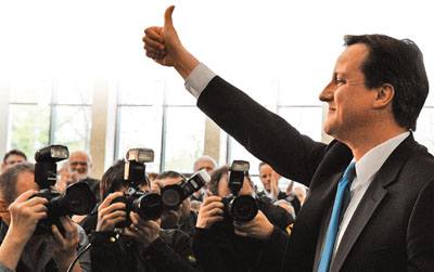 卡梅倫周二展開前所未見的24小時(shí)全國拉票行程,從蘇格蘭至布里斯托爾,進(jìn)入工黨勢力的心臟地帶,訪問漁民等深宵工作的草根階層。他又成為首位在選舉期間,到訪北愛爾蘭的主要政黨領(lǐng)袖,并承諾會給北愛政治人物部長級職位。