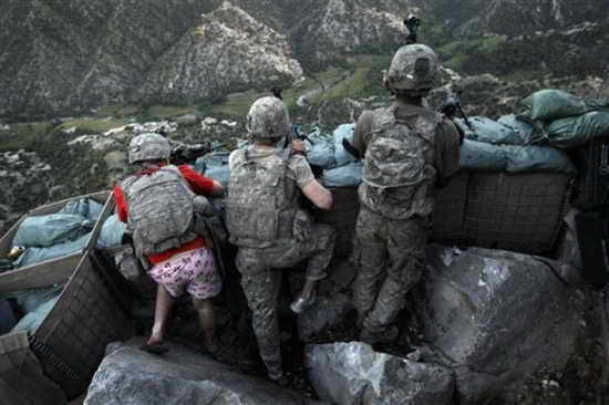 美聯(lián)社的一名攝影記者抓拍的一張照片顯示,19歲的陸軍專業(yè)軍士扎查里伊-波伊德在位于阿富汗庫納爾省科里加爾山谷的雷斯特雷波火力基地內(nèi)進入防御陣地,基地當(dāng)時遭到了塔利班的火力射擊。他當(dāng)時穿著一件四角內(nèi)褲,內(nèi)褲上印著彩紅色的“我愛紐約”字樣!都~約時報》12日在其頭版刊登了這張照片。