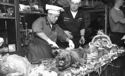 海軍官兵還特別期待一些能飽口福的“特殊的日子”,比如在生日會(huì)、少數(shù)族裔晚宴、星期天午餐會(huì)、“墨西哥煎玉米餅餐會(huì)”和“冰激凌聯(lián)誼會(huì)”上總能吃到許多可口的特色食物。此外,每天早上廚房還會(huì)烤出成箱的餅干送往各部門,這也很受士兵們喜愛。米爾斯和法度透露,航母上士兵們最喜歡的是一道名為“海浪和草地”(龍蝦和烤牛肉,作者注)的套餐,不過(guò)這種奢侈品一個(gè)月只能提供一兩次。此外,“斯坦尼斯”號(hào)的招牌菜“龍蝦天婦羅”也同樣受歡迎。