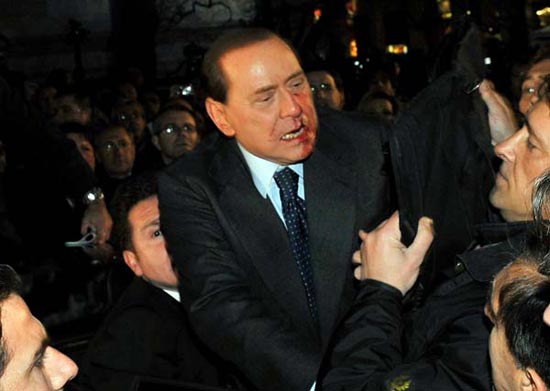 據(jù)悉,就在集會(huì)快要結(jié)束時(shí)上演了貝盧斯科尼遭暴力襲擊的一幕,當(dāng)時(shí)貝盧斯科尼正在一群支持者中為他們簽名。一名男子手持一個(gè)米蘭大教堂的模型打在貝盧斯科尼的臉上。之后警方將該男子制服,貝盧斯科尼則被迅速送往醫(yī)院。醫(yī)生稱(chēng)其沒(méi)有生命危險(xiǎn),只是鼻骨骨折,兩顆牙齒松動(dòng),嘴唇大量出血需要縫針。