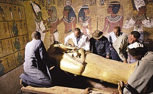 考古人員1922年在埃及南部金斯河谷墓穴發(fā)現(xiàn)圖坦卡蒙法老木乃伊。當(dāng)時(shí)木乃伊身上遍鋪珠寶飾物,還有一張做工精美的金面具。研究人員對(duì)圖坦卡蒙法老和其他數(shù)具木乃伊實(shí)施DNA檢測(cè)和電腦斷層掃描后認(rèn)定,圖坦卡蒙的祖父是阿蒙霍特普法老三世,父親是埃赫那頓法老,后者因改革古埃及眾神崇拜傳統(tǒng)、強(qiáng)制推行太陽神“一神獨(dú)尊”而著名。
