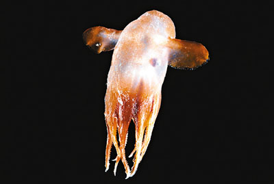 中新網(wǎng)11月24日電 由80個(gè)國(guó)家、逾2000名科學(xué)家進(jìn)行為期10年的海洋普查接近尾聲,科學(xué)家至今在深海已找到近1.8萬(wàn)種海洋生物,其中包括一種章魚,長(zhǎng)有如象耳般的一對(duì)鰭,專家為它取名“大寶”,即迪士尼卡通《小飛象》的主角。