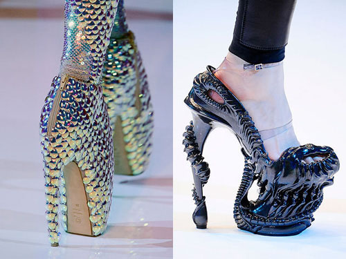 其實(shí),早在1994年,名模娜歐蜜-坎貝兒(Naomi Campbell)穿著龐克教母薇薇安-魏斯伍德(Vivienne Westwood)設(shè)計(jì)的18公分高跟鞋走秀時(shí),在舞臺(tái)上跌得四腳朝天,成為時(shí)尚界經(jīng)典一摔。然而,這次麥昆設(shè)計(jì)的鞋子又再高3英寸,導(dǎo)致名模們串連抗議。