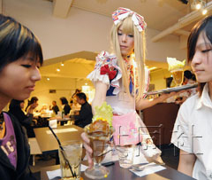 共同社在報道中提到了東京秋葉原的“云雀亭”女仆咖啡店。這些“女仆”服務員全部為身穿女裝的男性。他們頭戴假發(fā)、身著褶邊裙、帶著靚麗的妝容接待顧客。