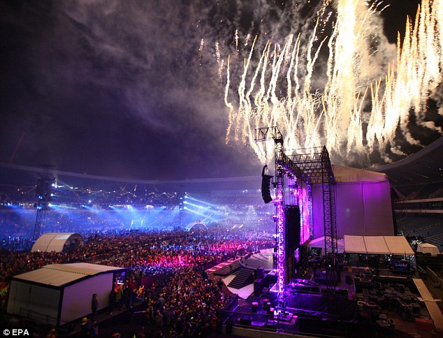 演唱會(huì)由傳統(tǒng)的非洲舞曲拉開(kāi)序幕。之后美國(guó)樂(lè)隊(duì)黑眼豆豆一襲角斗士扮相登上舞臺(tái),為觀眾送上三首經(jīng)典曲目,引爆全場(chǎng)熱情。