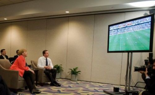 報(bào)道稱,卡梅倫和默克爾離開(kāi)了其他與會(huì)領(lǐng)導(dǎo)人,與手下一同觀看英德下半場(chǎng)比賽。結(jié)果德國(guó)隊(duì)又進(jìn)兩球,以4-1大勝英格蘭隊(duì)。