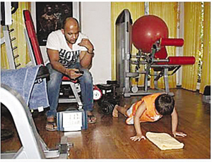 父母于是請(qǐng)來(lái)印度著名的私人健身教練薩特亞吉特·喬拉西亞對(duì)羅納克進(jìn)行更為專(zhuān)業(yè)的體能訓(xùn)練。據(jù)悉,健身教練喬拉西亞專(zhuān)門(mén)負(fù)責(zé)訓(xùn)練印度的名人和演員。過(guò)去2年來(lái),羅納克每周都會(huì)前往健身房訓(xùn)練數(shù)次,在健身教練喬拉西亞的指導(dǎo)下,利用啞鈴和杠鈴?fù)瓿筛鞣N高強(qiáng)度的器械練習(xí)。最折磨人的是,每次訓(xùn)練時(shí),健身教練喬拉西亞還會(huì)拿著一塊秒表掐算時(shí)間,督促羅納克在最短時(shí)間內(nèi)做成百上千個(gè)俯臥撐,以此增加他的體能和耐力。在跟隨健身教練喬拉西亞進(jìn)行了2年“魔鬼訓(xùn)練”后,羅納克將自己鍛煉成了一個(gè)擁有結(jié)實(shí)肌肉和驚人力量的“大力士”。日前,羅納克竟在短短40分鐘時(shí)間里,一口氣接連做了多達(dá)1500個(gè)俯臥撐,從而創(chuàng)下了一項(xiàng)新的印度全國(guó)紀(jì)錄!當(dāng)羅納克完成這一壯舉的錄像片段在網(wǎng)上曝光之后,許多人都看得目瞪口呆,無(wú)法相信自己的眼睛。