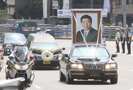 當(dāng)?shù)貢r(shí)間29日凌晨5時(shí),盧武鉉的出殯儀式結(jié)束后,靈車6時(shí)許離開(kāi)慶尚南道金海市進(jìn)泳邑峰下村,4小時(shí)50分鐘后來(lái)到首爾。
