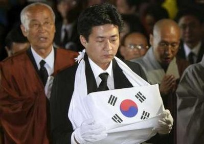 按照既定議程,盧武鉉遺體告別儀式結(jié)束后,靈車車隊(duì)向首爾廣場(chǎng)進(jìn)發(fā),下午一時(shí)舉行路祭,據(jù)報(bào)道,有50萬群眾參加。