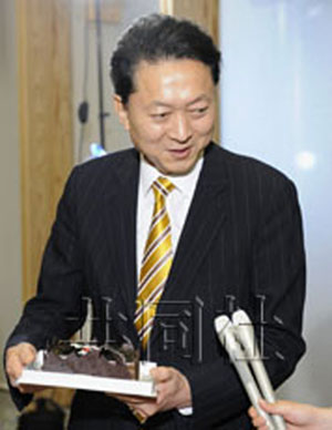 鳩山笑容滿面地說(shuō):“對(duì)能收到這樣甜蜜的禮物表示感謝!被仡欉^(guò)去的一年,他又苦笑著說(shuō):“雖然自己盡心盡力了,但得不到國(guó)民理解的時(shí)候只能承受痛苦。”