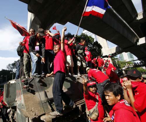 泰國(guó)最高法院最近裁定充公他信逾半資產(chǎn),惹來(lái)他信的支持者強(qiáng)烈反對(duì)。反獨(dú)裁民主聯(lián)盟(UDD,俗稱“紅衫軍”)計(jì)劃動(dòng)員百萬(wàn)民眾,星期五開始在曼谷周邊地區(qū)集合,之后再在曼谷市內(nèi)多處,包括皇家田廣場(chǎng)和國(guó)會(huì)大樓前,舉行百萬(wàn)人反政府集會(huì)和示威。紅衫軍領(lǐng)袖聲言集會(huì)會(huì)以和平方式進(jìn)行,目標(biāo)是三日內(nèi)迫使總理阿披實(shí)解散國(guó)會(huì),重新大選。他們更表示,剛頒布的國(guó)內(nèi)安全法不會(huì)阻止他們的活動(dòng)。