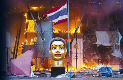 中新網5月20日電 據香港《文匯報》報道,泰國軍方19日清場,希望將陷入內戰(zhàn)邊緣的曼谷拯救出來,雖然紅衫軍節(jié)節(jié)敗退,但有激進分子未肯罷休,四處放火,電視臺、股票交易所、電力公司、幾間銀行、商場戲院都遭殃,商場和便利店亦成為搶掠目標。據報曼谷有27處地方起火,泰國最大的商場Central World、Siam Square和Siam Paragon三大購物中心被縱火,其中Central World燒通頂,據報快將倒塌。
