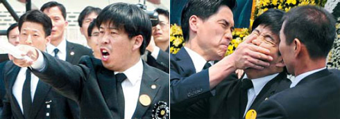 韓國去年5月29日為盧武鉉舉行葬禮。遺體告別儀式上,當李明博起身準備向盧武鉉遺像獻花時,白元宇突然朝他大喊“你是政治殺人犯”“請李總統(tǒng)道歉”。