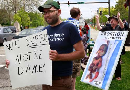 據(jù)報道,奧巴馬支持墮胎和胚胎干細(xì)胞研究立場,觸發(fā)天主教保守派人士和師生不滿。一些活動人士早已誓言干擾奧巴馬在該地的演講。