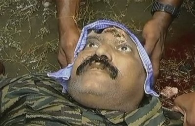 斯里蘭卡國家電視臺(tái)播放的錄像畫面顯示,一個(gè)看上去很像是泰米爾猛虎反叛組織領(lǐng)袖的尸體,身穿迷彩服,頭的頂部蓋著一塊布,顯然是遮掩一個(gè)傷口。