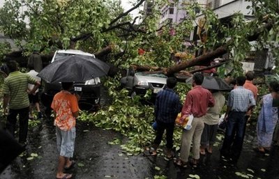 熱帶風暴襲擊了孟加拉邦人口密集的首府加爾各答,造成樹木折斷、斷電,許多車輛被毀。