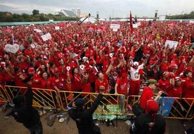 四月份泰國發(fā)生的長達兩星期的反政府示威活動導(dǎo)致一百多人受傷,兩人死亡。 那場大示威還迫使本來要在泰國舉行的東盟峰會取消,導(dǎo)致首都曼谷部分地區(qū)陷于癱瘓。泰國當(dāng)局因此下令曼谷進入緊急狀態(tài),還對14名示威領(lǐng)導(dǎo)人發(fā)出逮捕令,其中包括流亡的前總理他信。