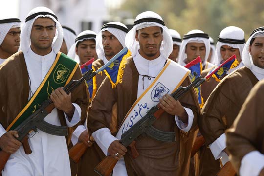 艾哈邁迪-內(nèi)賈德在閱兵式上說(shuō):“世界上沒(méi)有哪股力量有足夠膽量進(jìn)犯伊朗,因?yàn)槲覀儽纫酝咏?jīng)驗(yàn)豐富,更加強(qiáng)大。伊朗武裝力量將在那些進(jìn)犯者扣動(dòng)扳機(jī)前就砍下他們的手。”