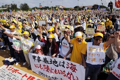 據(jù)報(bào)道,將機(jī)場(chǎng)遷至鹿兒島縣德之島的方案遭到了當(dāng)?shù)氐膹?qiáng)烈拒絕。日本首相鳩山由紀(jì)夫能否按照承諾在5月底前解決搬遷問(wèn)題令人擔(dān)憂。政府內(nèi)部有人主張回歸遷往名護(hù)市施瓦布軍營(yíng)沿岸地區(qū)這一現(xiàn)行方案。集會(huì)顯示了沖繩拒絕縣內(nèi)搬遷的民意,這將使得政府更加難以應(yīng)對(duì)。