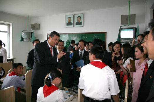 中新網(wǎng)6月18日電 中國駐朝鮮大使館網(wǎng)站消息,6月17日,素有朝鮮“秀才學(xué)!敝Q的東平壤第一中學(xué)里歡聲笑語、氣氛熱烈。該校紀(jì)念“毛澤東班”命名50周年的活動(dòng)正在舉行。朝中友協(xié)副委員長兼朝鮮對(duì)外文委副委員長田英進(jìn)、北京五中代表團(tuán)的師生們出席了紀(jì)念活動(dòng)。中國駐朝鮮大使劉曉明率使館外交官也應(yīng)邀出席。