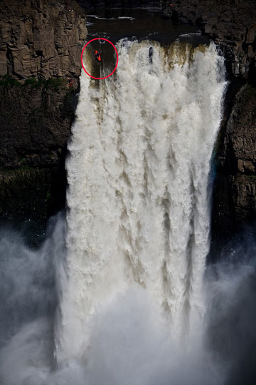 為了為此次降落做準(zhǔn)備,來自蒙塔納的布蘭特此前曾經(jīng)嘗試在俄勒岡的瀑布乘著皮劃艇從70-80英尺高的瀑布頂端降落。他最大的創(chuàng)舉是于2007年在加拿大西北領(lǐng)地的亞歷山大瀑布,乘皮劃艇從107英尺高的瀑布降落。