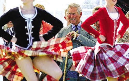報道稱,日前查爾斯首次在妻子卡米拉陪同下,到蘇格蘭北部高地出席貴族競技賽。活動上,有女舞蹈演員起舞助興,舞動時揚起了蘇格蘭裙露出黑色內褲和美腿,查爾斯看見后,一邊微笑一邊緊盯。