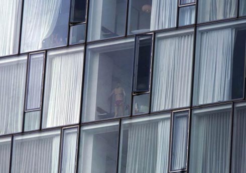 在美國(guó)紐約市新近開放的High Line公園內(nèi),矗立著Standard Hotel酒店, 該酒店房間面朝公園的一面被建造為落地玻璃窗,方便房客俯瞰公園景色,當(dāng)然,酒店外的人也能透過(guò)玻璃窗清楚地看到房間里的景象。然而,許多房客不知出于什么原因,經(jīng)常沒(méi)有拉上窗簾,就進(jìn)行各種私人活動(dòng),將一些裸露、猥褻、甚至粗野的行為都完整地暴露在公眾的視線當(dāng)中,讓公園游客們大飽眼福。