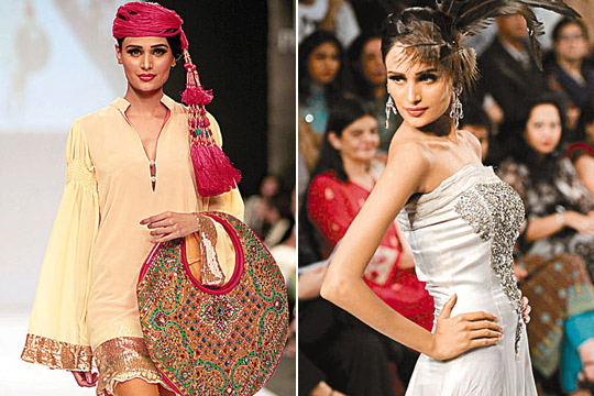 模特兒穿上當(dāng)?shù)卦O(shè)計(jì)師力作逐一亮相,當(dāng)中包括巴基斯坦傳統(tǒng)特色衣裙,配以閃耀的衣飾;又或戴上罩袍式頭罩,同時(shí)展露雙肩及臂上的紋身圖案;男的穿上鑲滿珠片的上衣配以短褲。模特兒袒胸露臂、展露美腿,有設(shè)計(jì)師甚至加入巴國(guó)混亂局勢(shì)為時(shí)裝設(shè)計(jì)的元素。