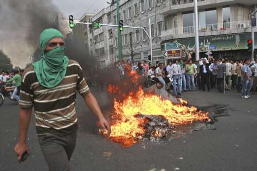 在十三日爆發(fā)的騷亂中,揮舞警棍的防暴警察與示威者爆發(fā)沖突,群眾高呼“處死獨裁者”,向警員扔擲石塊,又放火焚燒警車和垃圾桶。大批警員駐守在內政部周圍,一幢銀行建筑物嚴重焚毀,通往德黑蘭大學學生宿舍的道路被封鎖。