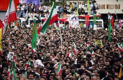 據(jù)英國(guó)廣播公司報(bào)道,周日,狂喜的支持者高舉伊朗國(guó)旗和艾哈邁迪內(nèi)賈德的大幅照片,涌入德黑蘭的主要街道,慶祝艾哈邁迪內(nèi)賈德大選勝利。