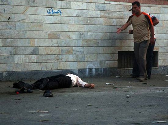 據(jù)英國《泰晤士報》、《每日郵報》、美國《時代》雜志6月18日報道,伊朗大選后的騷亂已經(jīng)進入第5天,大約有50萬抗議者涌上街頭,抗議大選結(jié)果。遠在韓國參加世界杯資格賽的伊朗國家隊球員也在比賽中戴上綠色腕帶力挺穆薩維。但令人感到恐怖的是,根據(jù)微博客Twitter上發(fā)布的照片,德黑蘭街頭近日出現(xiàn)被打死的抗議者的尸首。