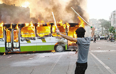他說示威隊伍約1000人,后來大批駕駛電單車的軍警人員逼近,毆打他們,人群四散躲避之際,民兵卻帶著棍棒在小巷里埋伏。示威者霎時間無路可退,幸得巷里人家開門營救。當(dāng)示威者遠(yuǎn)離警察和民兵后,便高呼“伊朗已變成巴勒斯坦”等口號,駛經(jīng)的汽車都響號,公共汽車乘客揮手支持。