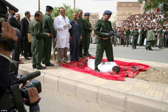 據(jù)英國《每日郵報》6月7日報道,一名強(qiáng)奸并謀殺了一名11歲男孩的也門男子日前當(dāng)街被執(zhí)行了槍決。他先被游街示眾,隨后在眾目睽睽之下被行刑者擊中頭部槍決。數(shù)百名旁觀者目睹了這一可怕場面。