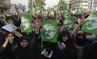 18日,幾萬名佩戴綠色標(biāo)志物的穆薩維支持者,高呼口號(hào)向德黑蘭一個(gè)主要廣場出發(fā),參加一年一度的“圣城(耶路撒冷)日”集會(huì)!笆コ(耶路撒冷)日”是伊朗每年舉行的反對以色列、支持巴勒斯坦的大會(huì)。伊朗總統(tǒng)內(nèi)賈德將在此次大會(huì)上發(fā)表演講。