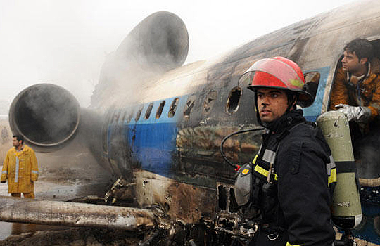 另外,伊朗官員稱這架蘇制TU-154客機尾部起火,隨后客機沖出跑道,尾部斷裂。