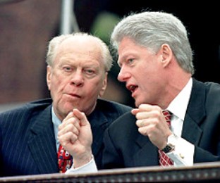 福特夫婦1993年首次與克林頓夫婦見面,他們當(dāng)時邀請新的第一家庭至他們科羅拉多的家中作客。福特對克林頓的印象好壞參半,他認(rèn)為克林頓很有個人魅力、說話準(zhǔn)確、善于推銷,是他所見過的最好的政治家,甚至要比肯尼迪總統(tǒng)都強(qiáng),但他認(rèn)為克林頓在外交政策方面很弱。福特還感到克林頓沒有吸取他個人生活的錯誤,有關(guān)他風(fēng)流行為的傳聞在他進(jìn)行總統(tǒng)競選活動時一直困擾著他。福特稱,他得出這樣的結(jié)論是出于他對克林頓夫婦的觀察,他曾邀請克林頓夫婦在科羅拉多度周末。他后來說:“我可以告訴你一件事:他不放過社交場合的任何一位漂亮女士。我可以告訴你,他一直色迷迷的。貝蒂有著同樣的印象,他毫不掩飾自己的興趣!
