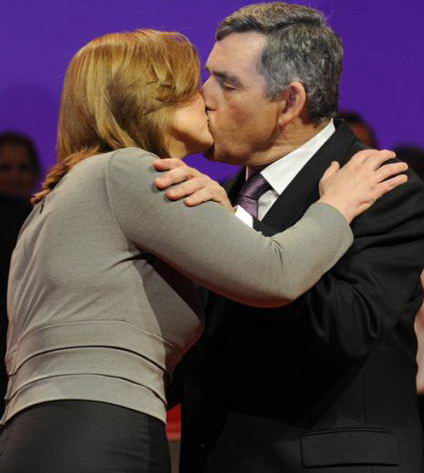 布朗夫人登工黨大會(huì)講臺(tái)獻(xiàn)吻。