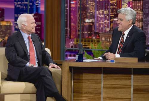 麥凱恩十一日在全國(guó)廣播公司的《今夜秀》(Tonight Show)中接受主持人積連奴訪問(wèn)。他看來(lái)精神不錯(cuò),而且能夠泰然地拿敗選一事來(lái)開(kāi)點(diǎn)玩笑。他說(shuō)自己在敗選后一直“睡得像個(gè)嬰兒般:睡兩個(gè)鐘頭,然后起床哭一下,然后又睡兩個(gè)鐘頭。”麥凱恩稱,他所住的亞利桑那州現(xiàn)在已出了四名在大選中落敗的總統(tǒng)候選人,因此該州“可能是美國(guó)唯一一個(gè)母親們不會(huì)告訴子女他們有朝一日可以當(dāng)上總統(tǒng)的州分了。”他又說(shuō),大選翌日他和妻子辛迪做的第一件事是出門買咖啡,而“不是買報(bào)紙”。